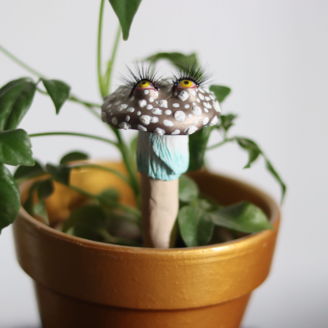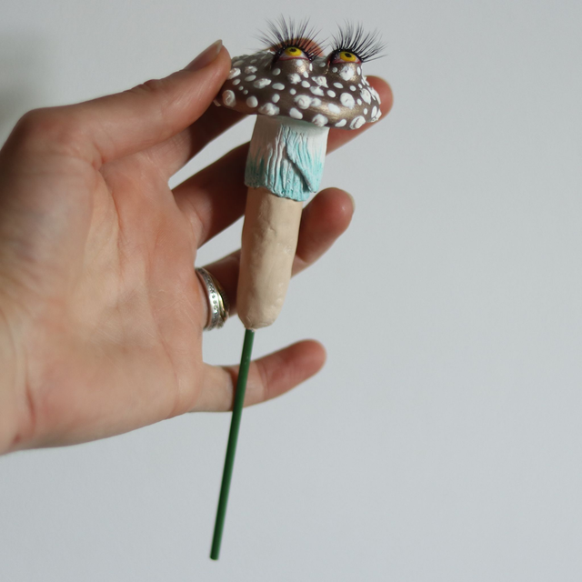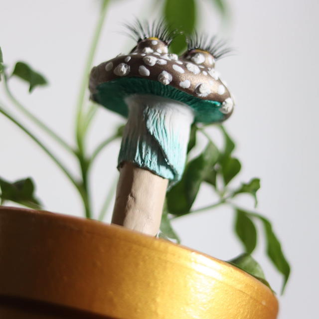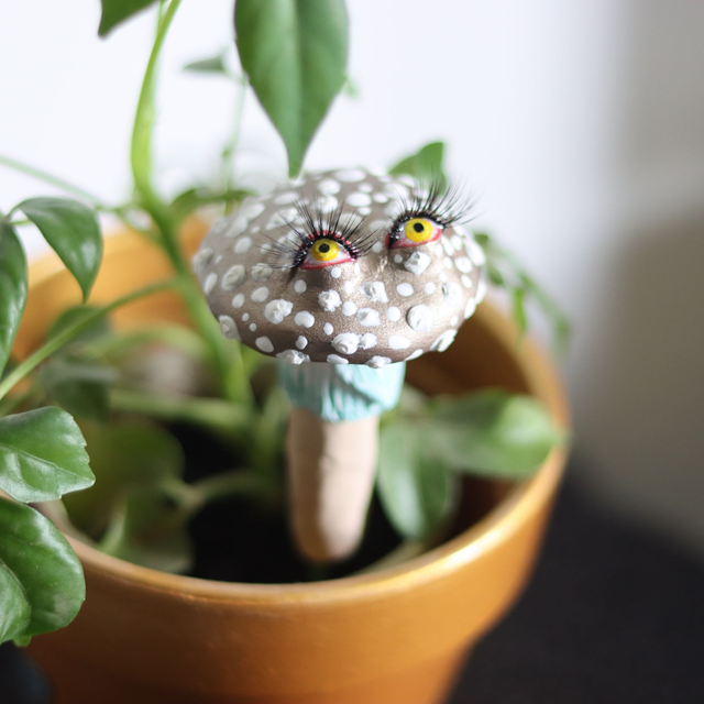 Cette amanite à piquer a été pensée pour accompagner les plantes d'intérieur avec douceur et discrétion. Elle se glisse au creux de la terre comme une petite gardienne silencieuse, veillant sur le vivant qui l'entoure.