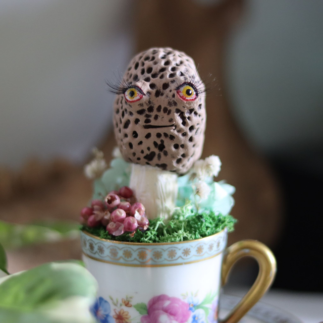 Cette créature a été façonnée lentement, à la main, en argile. Elle est née d'un geste calme et intuitif, guidée par la matière plus que par une idée précise. Son regard n'est pas la pour observer, mais pour veiller.